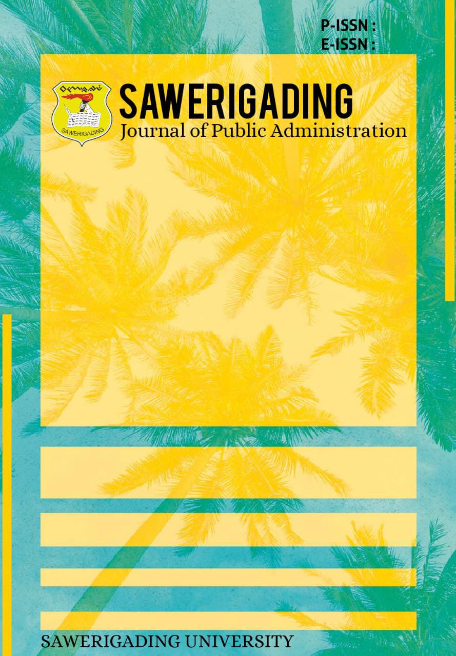 Journal of State Administration Science is an open access peer reviewed research journal published by the State Administration Science Study Program at Sawerigading University. Journal of Public Administration Science has i e-ISSN: 2828-4046 for the online version. This journal provides an opportunity for researchers or writers to publish and share knowledge in the field of public administration with an interdisciplinary approach in the form of research results, scientific papers, reviews and book reviews. The Public Administration Science Journal is published twice a year, in March and September